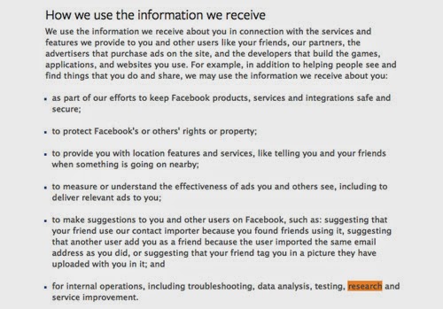 En el 2011, la FTC había demandado a Facebook por compartir más información de la que debería según su política de usuario, aun así, ahora la política de uso de datos de Facebook establece que la compañía puede usar la información de los usuarios para fines de investigación.